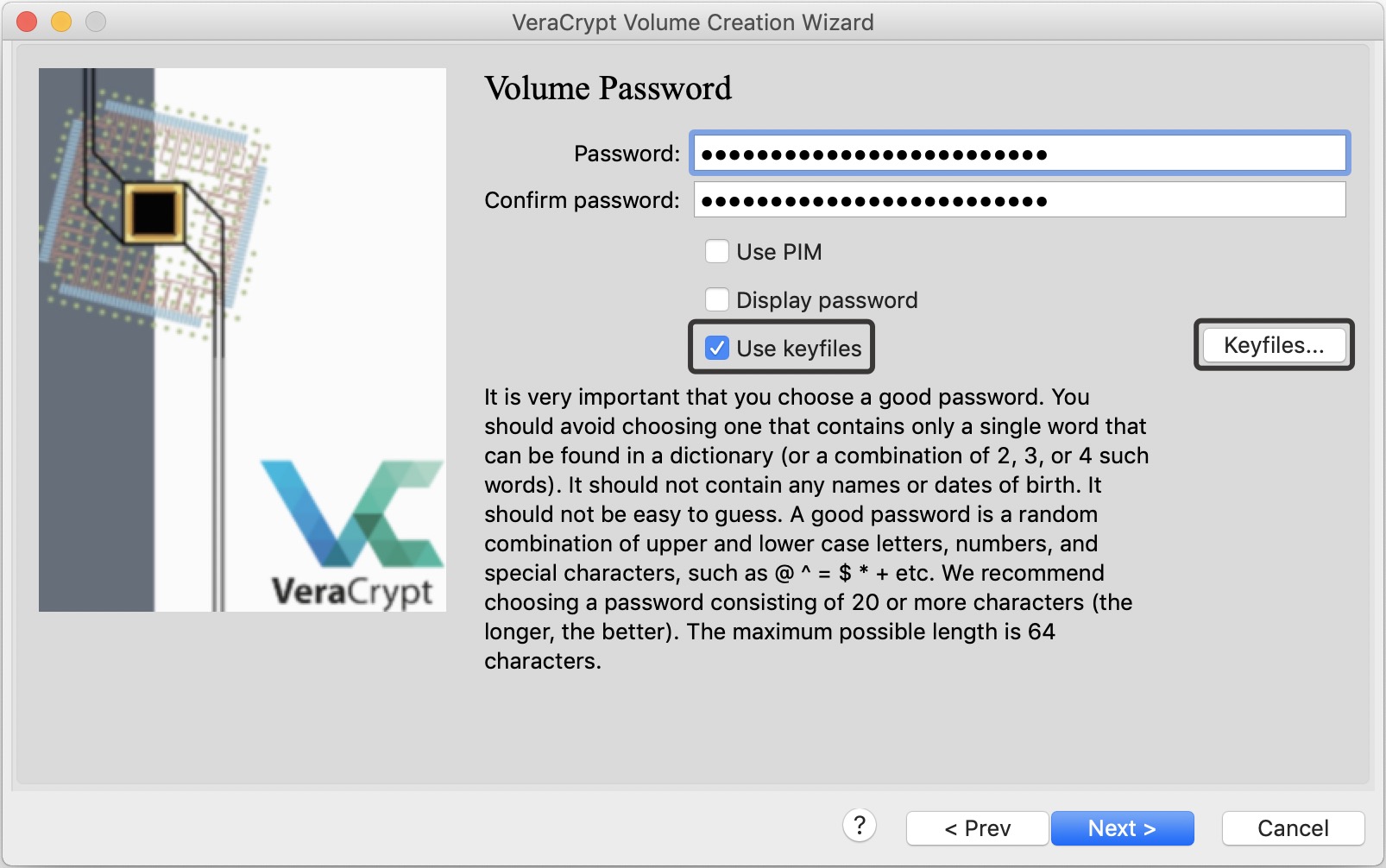 Процесс установки VeraCrypt и создания криптоконтейнера был подробно описан нами в соответствующих главах. При вводе пароля от криптоконтейнера поставьте галочку «Use keyfiles» и нажмите на кнопку «Keyfiles…».