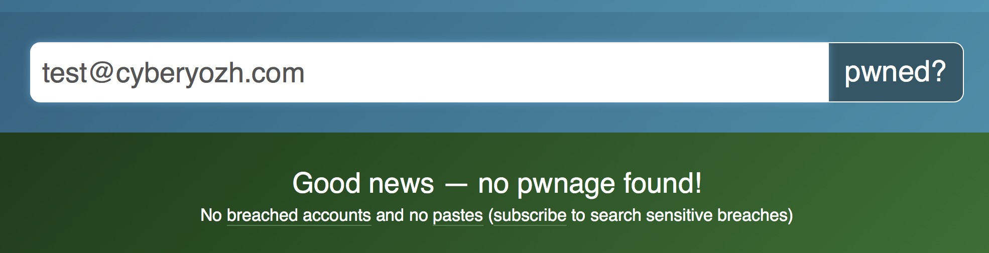 Мы подробно рассказываем, как следить за утечками, в главе, посвященной утечкам данных. Конечно, этот метод не дает гарантий, так как об утечке могут не узнать или новость не появится на предложенных сайтах. Иногда об утечках становится известно слишком поздно, как в случае с пользователями Yahoo, узнавшими лишь спустя несколько лет, что все электронные почтовые ящики были скомпрометированы (кроме компрометации, стало известно, что спецслужбы США имели доступ к почте и