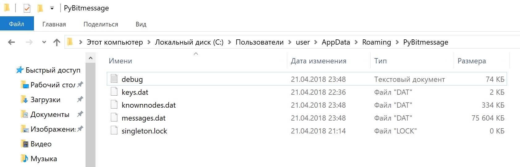 Возможно, вам потребуется экстренно уничтожить сохраненные переписки и ключи для дешифрования Bitmessage. Это можно сделать самостоятельно, открыв системную папку PyBitmessage (где она расположена, мы уже говорили ранее) и удалив из нее все файлы.