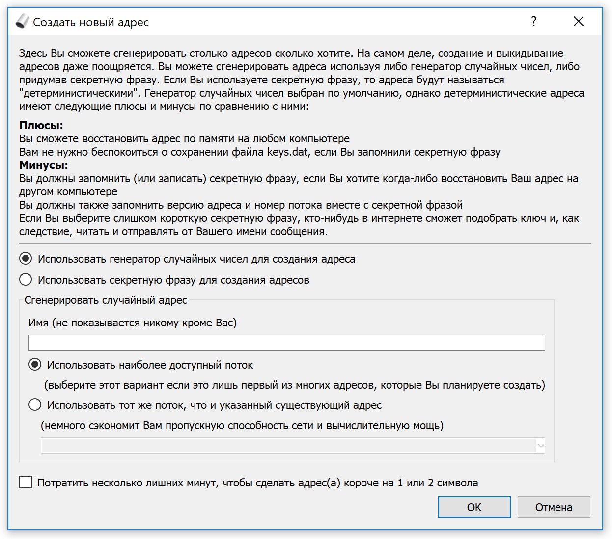 Адрес необходимо сгенерировать при помощи генератора адресов. Для этого в программе выберите Создать новый адрес.