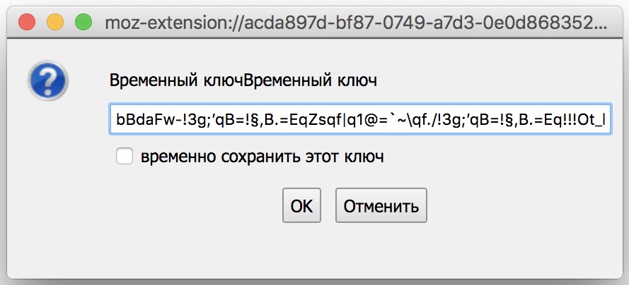 Нажимаем Зашифровать, придумываем временный ключ. Ключ надо передать собеседнику альтернативным каналом.