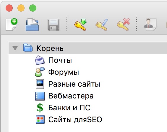 После создания базы данных переходим ко второму шагу – созданию групп паролей. Группы нужны для удобной сортировки паролей, например, у меня созданы следующие группы: электронная почта, форумы и сайты, мессенджеры и VOIP, социальные сети, админки, домены, управление проектами, хостинги, прочее.