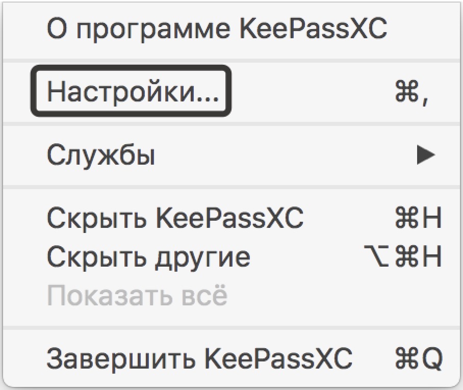 Для этого заходим в главное меню программы KeePassXC и выбираем Инструменты > Настройки.