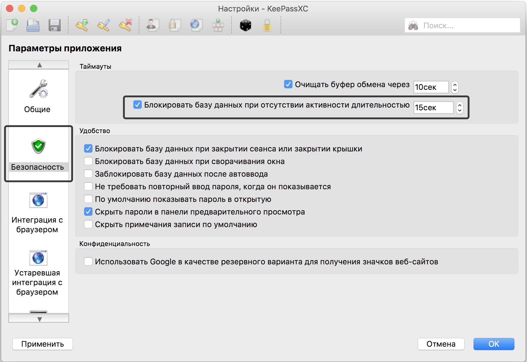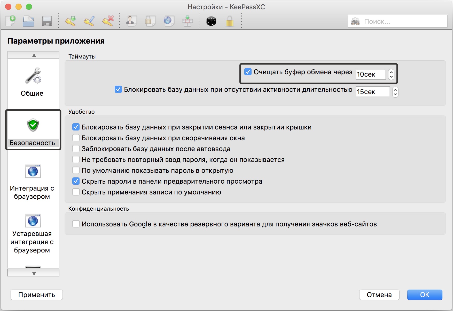 Эта опция есть в настройках большинства менеджеров паролей, в KeePassXC она выглядит так.
