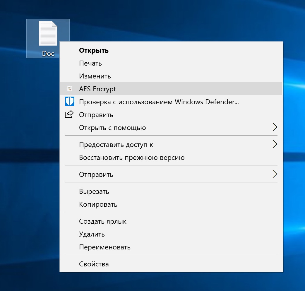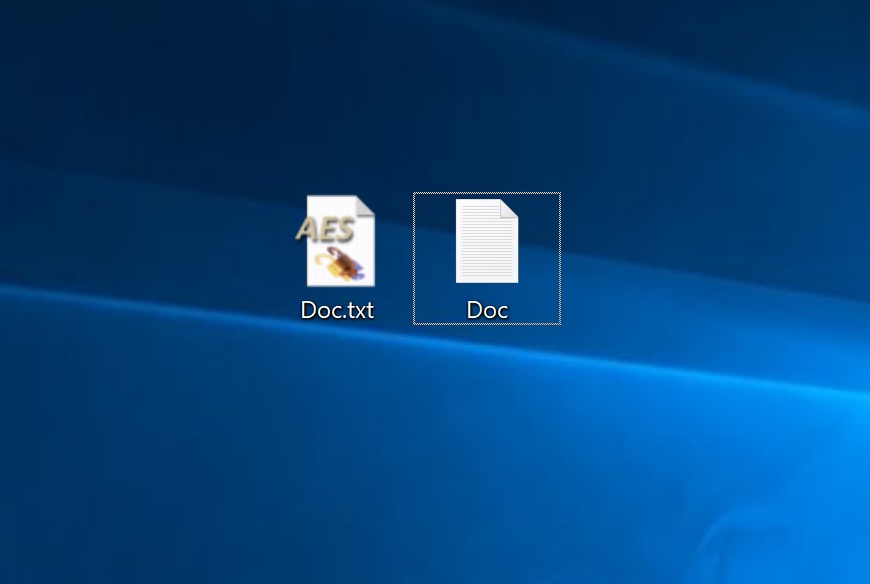 Зашифрованный файл представляет собой копию исходного файла с расширением .aes. Исходный файл при этом надо удалить.