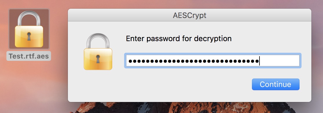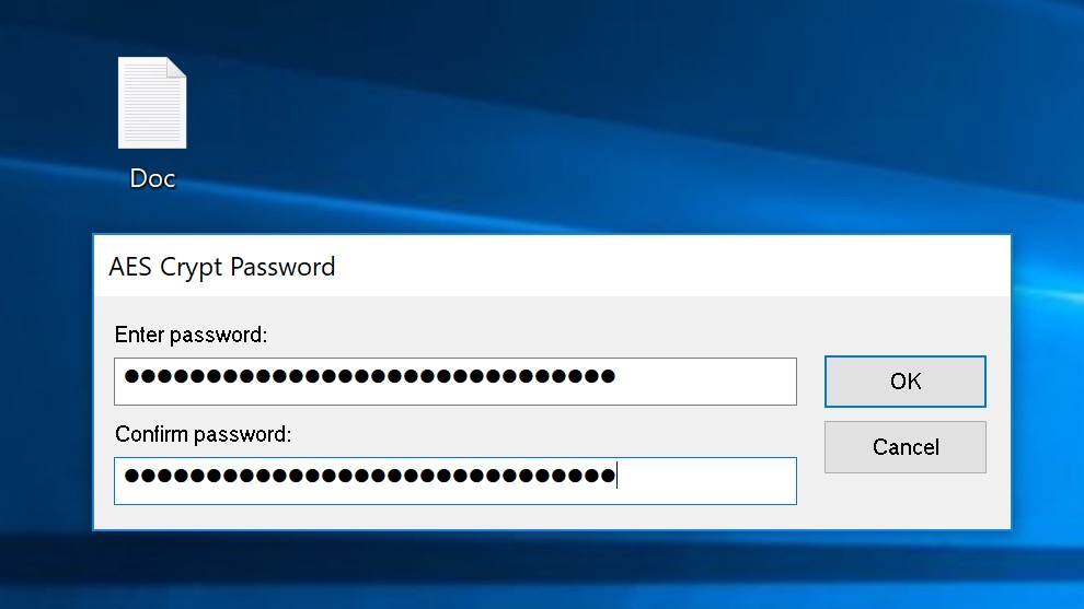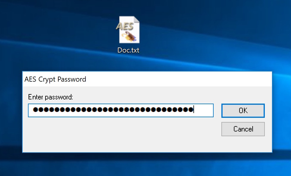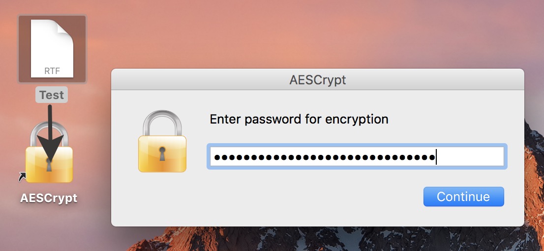 Шифруемый файл также должен располагаться на рабочем столе. Выберите файл, который необходимо зашифровать, и перетащите его на ярлык AES Crypt. Система попросит вас придумать пароль.