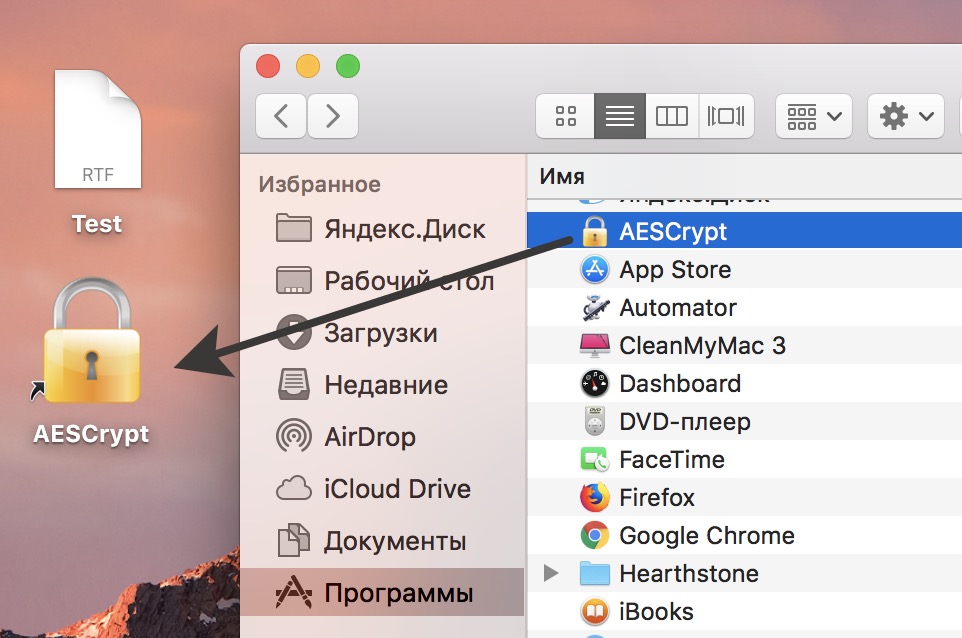 Здесь все тоже очень просто. Из папки Программы перетащите ярлык AES Crypt на рабочий стол.