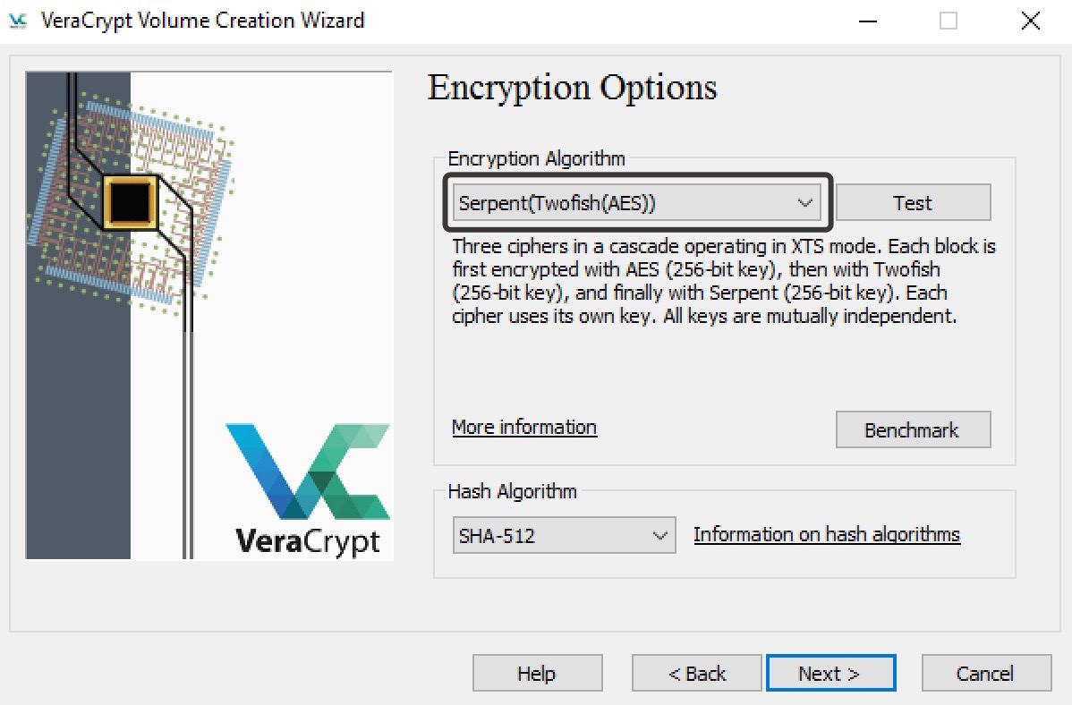 Следующим шагом идет выбор алгоритма шифрования. Алгоритм шифрования - это метод, который будет использоваться для шифрования данных. Мы бы рассказали вам о сравнении алгоритмов, но это сложно и скучно, а потому просто выберите Serpent-Twofish-AES.