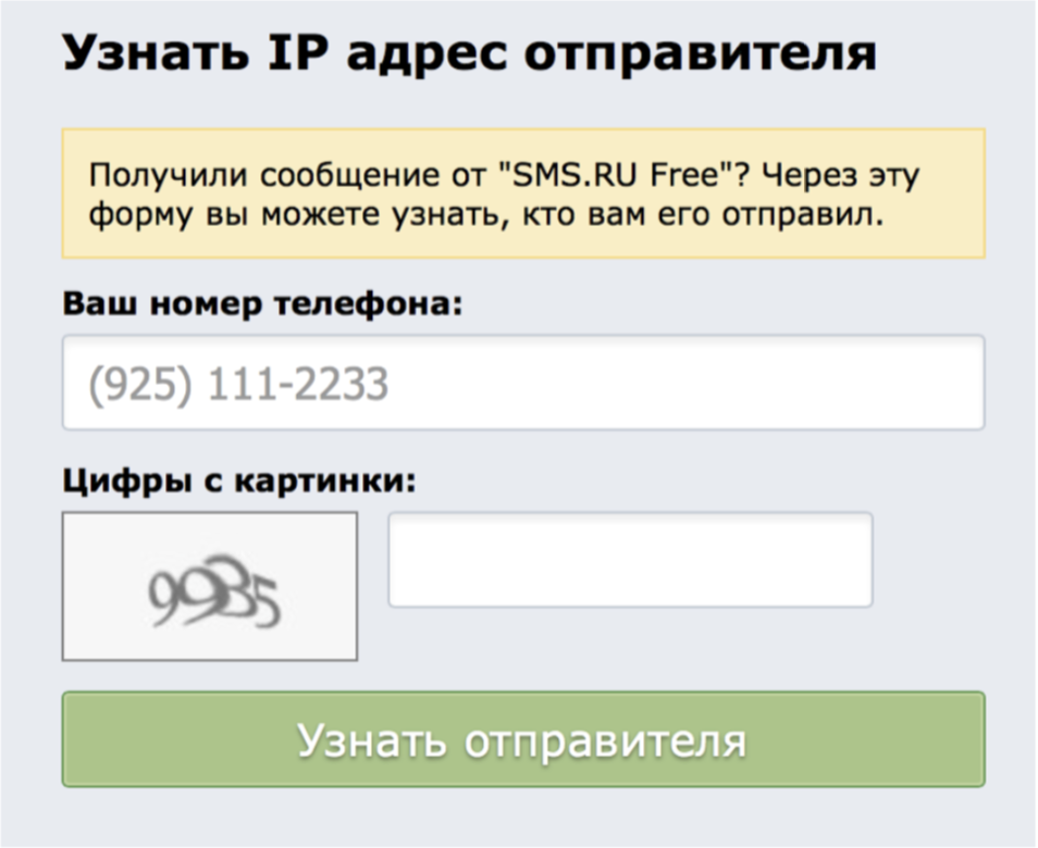 Даже если вы не хотите скрывать свой IP-адрес от сервиса, помните, что некоторые сервисы выдают IP-адреса отправителей СМС получателям. На примере ниже для получения IP-адреса отправителя достаточно просто указать свой номер, на который вы получили СМС.