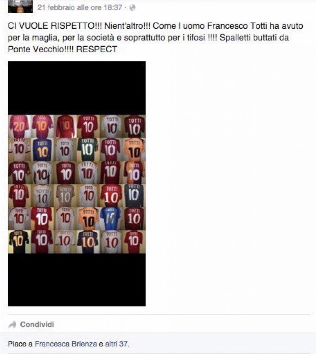 В начале 2016 года между главным тренером футбольного клуба Рома Лучано Спаллетти и легендой клуба Франческо Тотти вспыхнул конфликт, в результате которого была уволена ведущая клубного телеканала Франческа Бриенца (Francesca Brienza).
