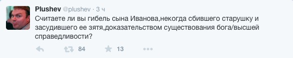 За этот твит журналист был осужден многими коллегами и уволен лично председателем совета директоров холдинга «Газпром-Медиа» Михаилом Лесиным. Позже Плющев принес извинения.