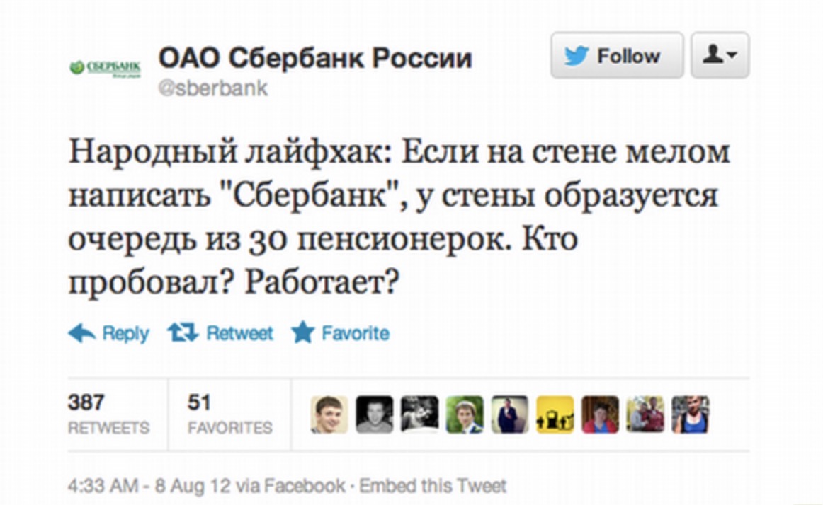 Екатерина Иванова (фамилия изменена), SMM-менеджер «Сбербанка», опубликовала в «Твиттере» своеобразный лайфхак.