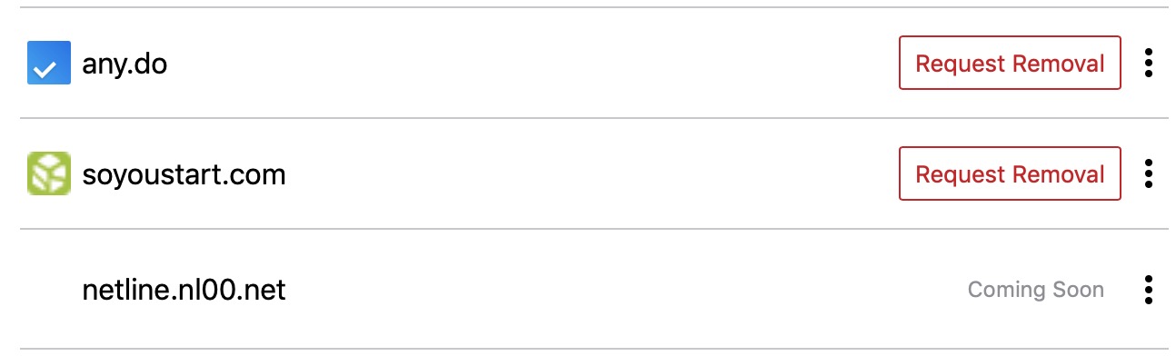 Как это работает? Вы авторизуетесь в deseat.me, предоставляя ему права чтения и отправки писем. Сервис сканирует ваш почтовый ящик, находит известные ему сайты, а затем предлагает вам отправить запросы на удаление аккаунтов на них. Вы сами решаете, какие из них оставить, а какие удалить. Запрос на удаление отправляется нажатием кнопки «Request Removal».