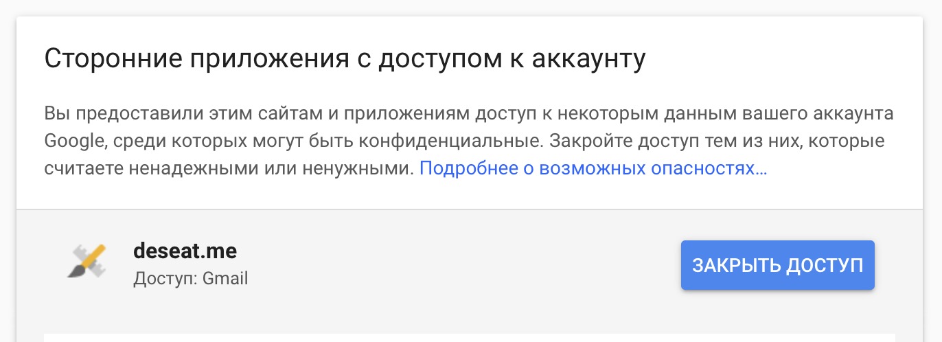 В любом случае после использования сервиса доступ стоит отозвать в настройках аккаунта Google или Outlook, а аккаунт в сервисе удалить. В Google отозвать права можно по данной ссылке, выбрав пункт «Приложения, у которых есть доступ к аккаунту».
