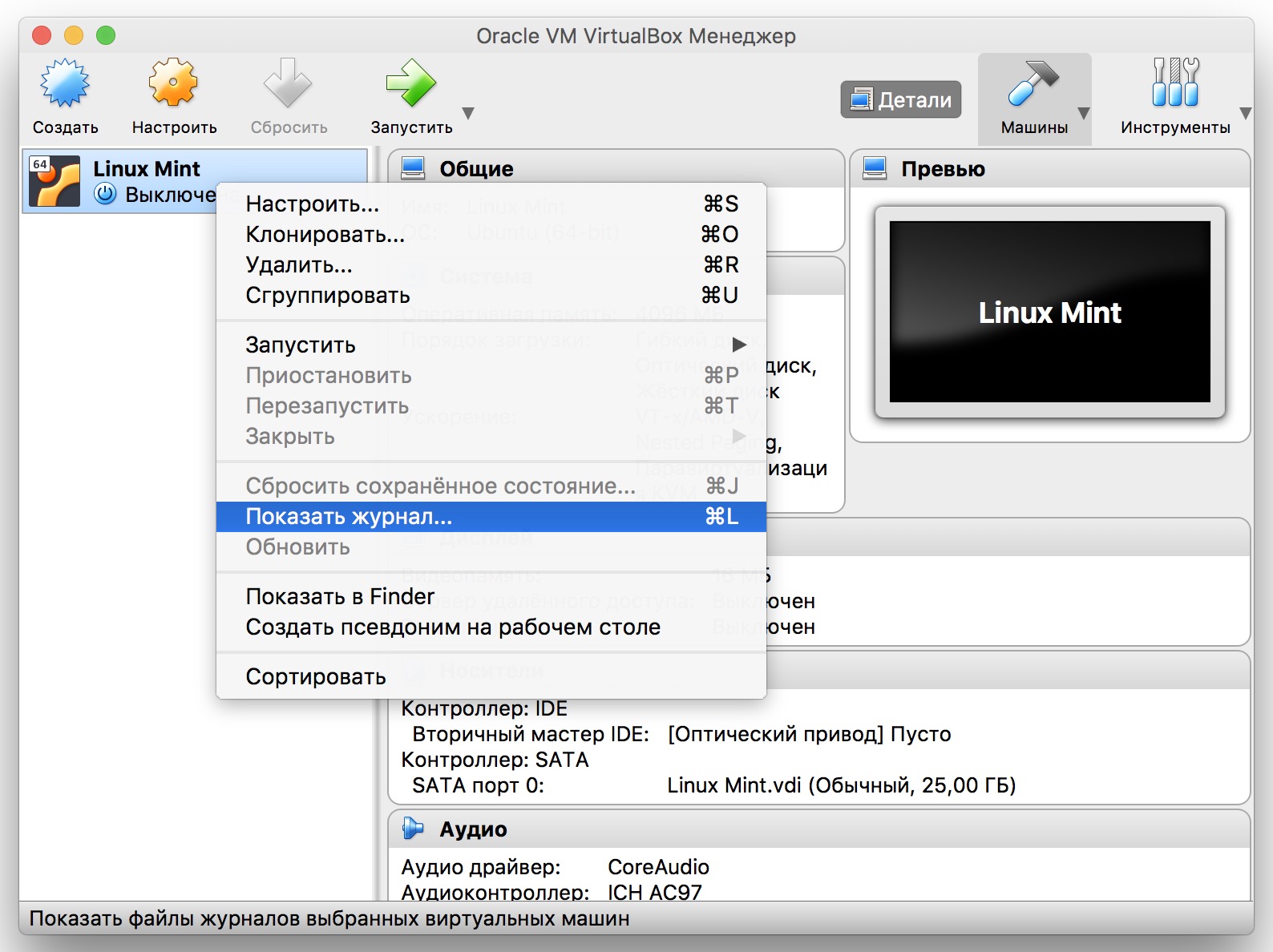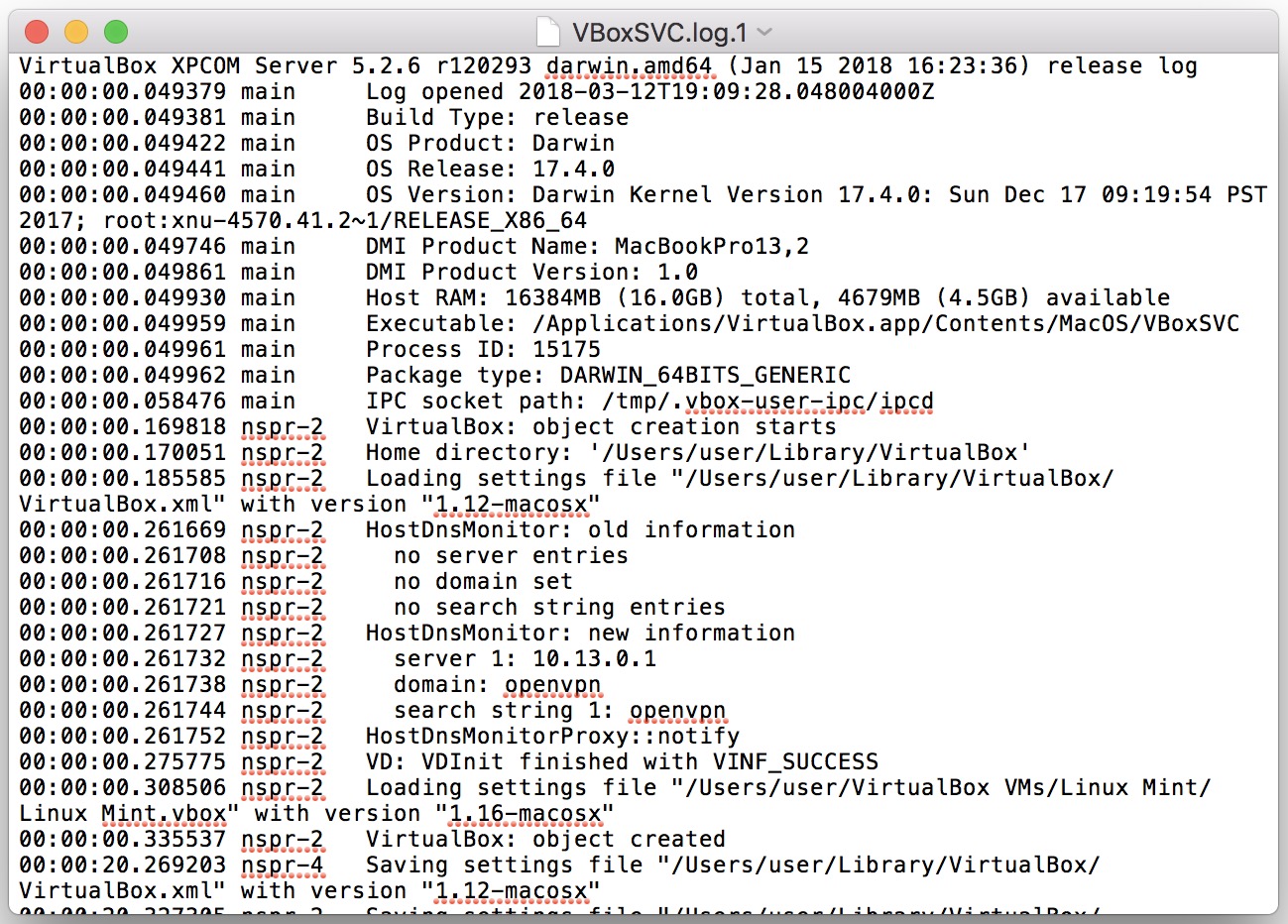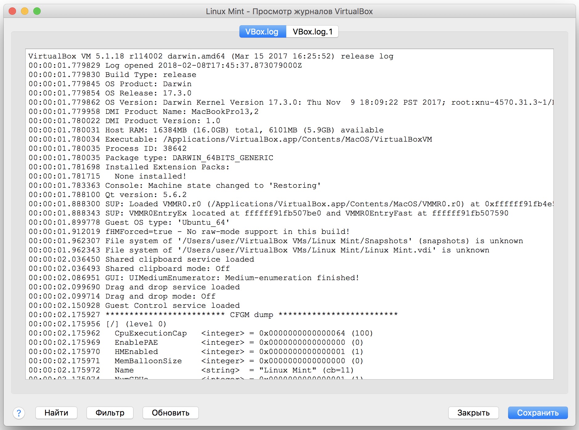 Как и многие другие, программа VirtualBox имеет свой лог, куда записывает события, происходящие с программой от запуска до вносимых в настройки изменений.